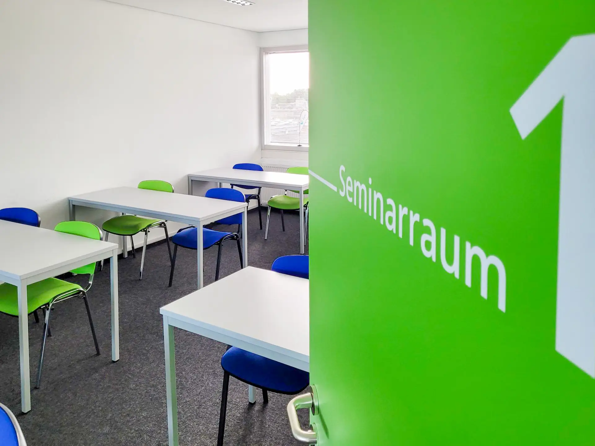 Unser Foyer bietet Sitzmöglichkeiten, Wasser und Kaffee für Pausenaufenthalte.
