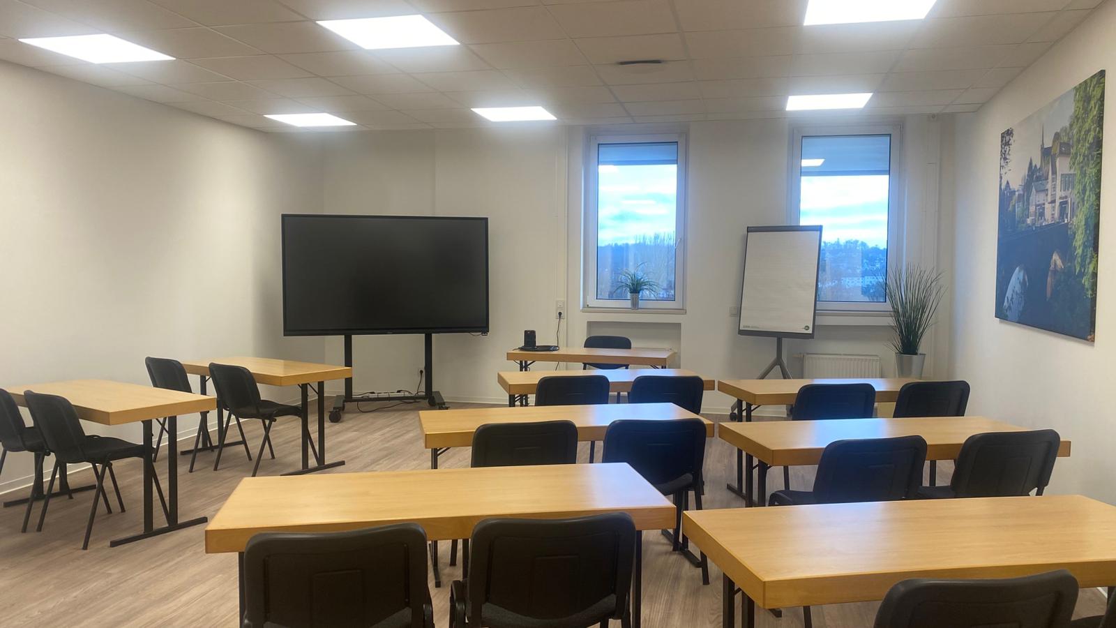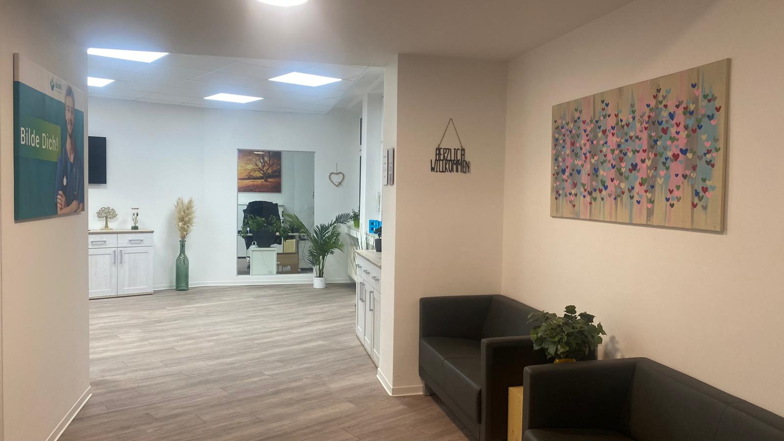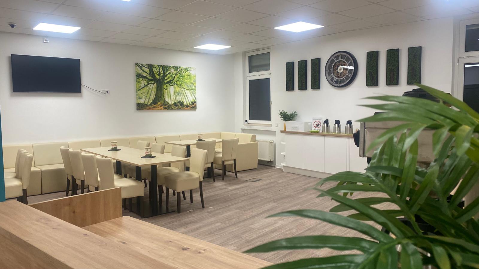 Unser Foyer bietet Sitzmöglichkeiten, Wasser und Kaffee für Pausenaufenthalte.